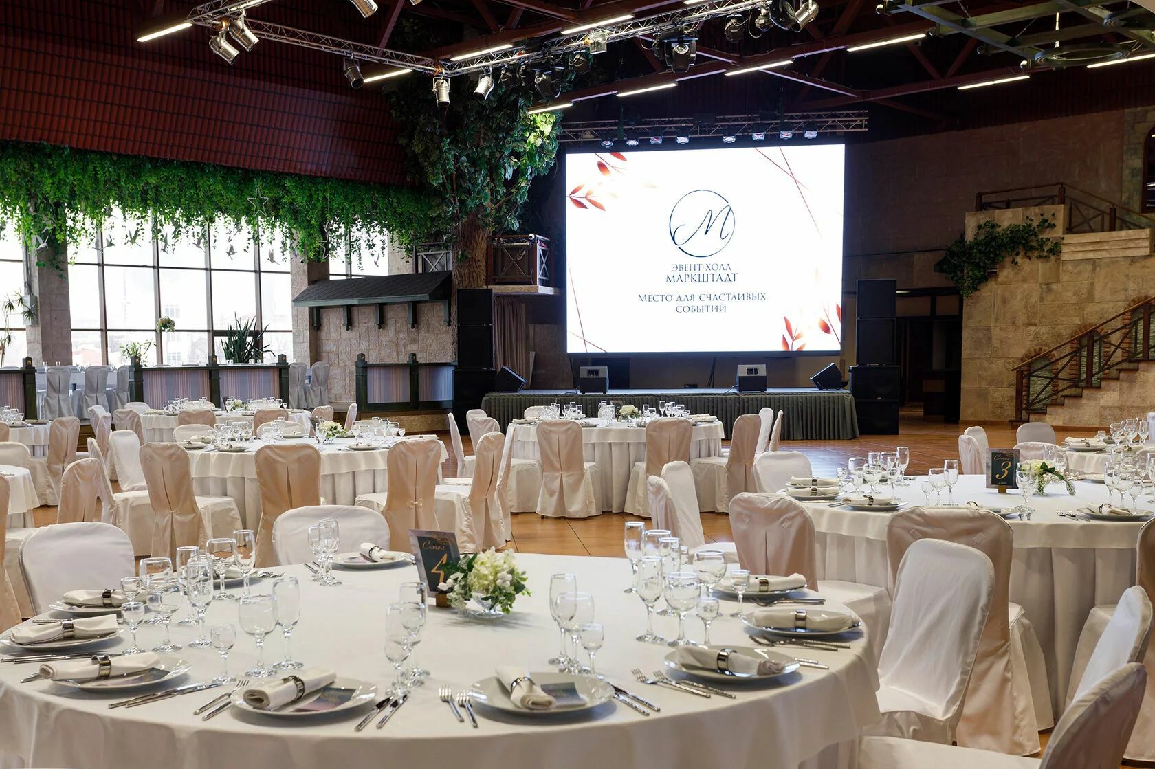 Выездная церемония для молодоженов в подарок в зале «Маркштадт» (аренда зала, арка, стулья, аппаратура)